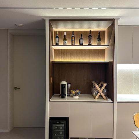 영하의 추운 기온이 정체되고 다시 조금 서늘하고 따뜻한 날씨가 다가온 11월 수요일 오전 더위 인테리어 인사드립니다.오늘은 다시 따뜻해진 날씨처럼 우드포인트의 따뜻한 홈바 인테리어를 연출한 광교 래미안 현장 속 주방 인테리어의 모습을 랜선 집들이로 여러분께 소개하고자 준비했습니다.깔끔한 디자인과 가구 레이아웃 속 조명과 우드의 따뜻한 감성이 느껴지는 주방인 만큼 새로운 둥지를 만들기 위해 고민하시는 많은 분들께 좋은 아이디어와 영감을 전할 수 있는 광교 아파트 인테리어 현장이 되지 않을까 싶습니다. 깔끔한 홈바를 장식한 광교 인테리어 주방의 더러움 인테리어